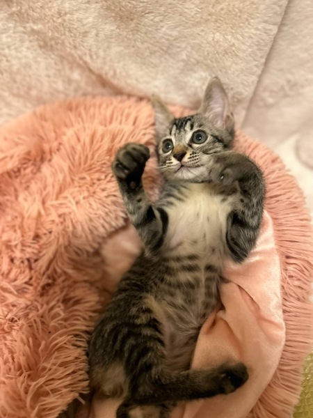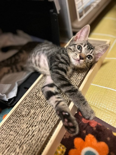 | 特徴(性格など) | 4兄妹いた中でいちばん大きな子です。 生粋の甘えん坊ですが気は強めです(゚∀゚ )寝ているとお腹の上にのってきます、甘えっ子すぎてついてまわります。 そんな心心の可愛さを受けとめてくださる方をお待ちしております! 子猫なので走りだすと騒がしいです(^^) |