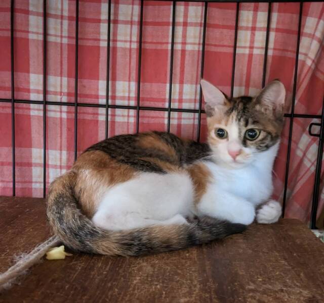 | 特徴(性格など) | 抱っこも好きで、おもちゃにもよく反応する、ほかの猫にも興味があるので、飼いやすい。 尻尾は、長くまっすぐで、かなりな美猫。 大人しいそうに見えて、オス猫にも負けない。 | ||