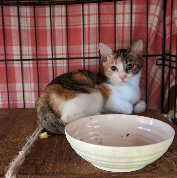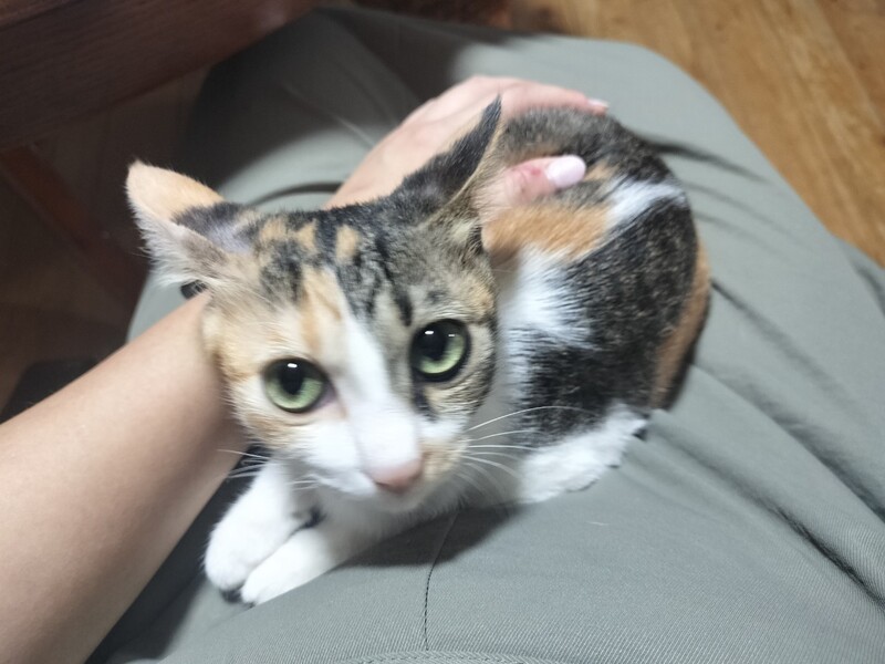 | 里親募集する理由 | 法事で行った先(九州)で、親戚が親子で通ってきた猫にえさやりしていて、人なれしたので、東京に連れて行って里親募集して欲しいとたのまれた。 | ||
