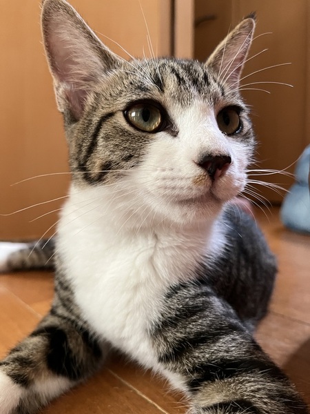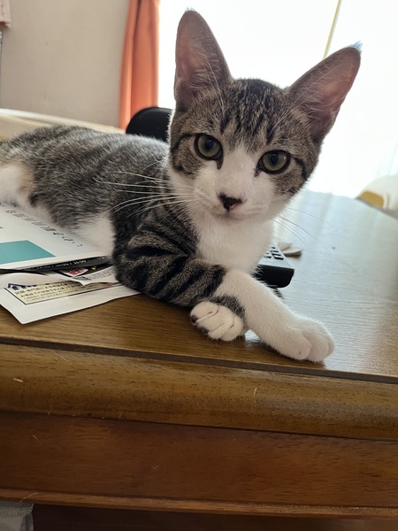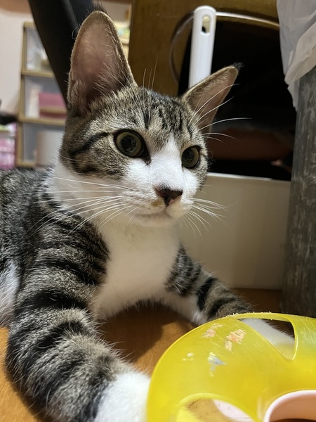 | 特徴(性格など) | 寝る時は一緒に寝るほどの甘えん坊。元気いっぱいなオスのキジ白です。今はほかの猫とも仲良くできています。 |