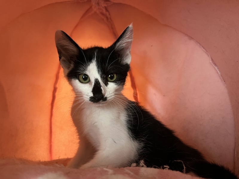 | 里親募集する理由 | 生後一ヶ月くらいの子猫ちゃんが迷い込んできて配管のところに挟まっていたので保護したものの、しばらく様子見ても親猫の気配も他の猫の気配もなく、保護主さんは猫が苦手なためどうしたらいいか…と相談を受け引き取りました。 | ||