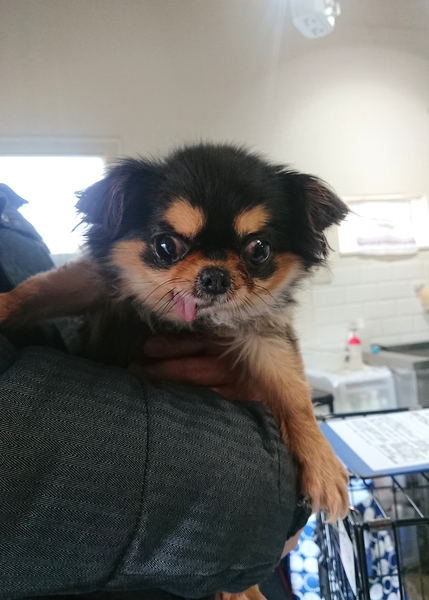 | 特徴(性格など) | ロングコートチワワ 色:ブラックタン 名前は、まる子ちゃん 体重 2kg ワクチン 接種済み レボリューション 済み フィラリア陰性 心雑音 問題なし パテラ 問題無し 避妊手術 済み 少しシャイで優しい子です。 吠えたり噛んだりはしません。 繁殖場では、撫でてもらったり抱っこしてもらったり全く無かったので、家庭で生活していくうちに、家庭犬らしくなってくると思います。 気長に見て頂ければと思います。 |