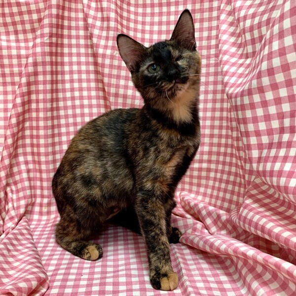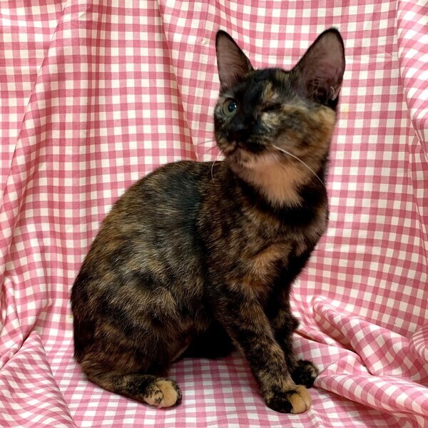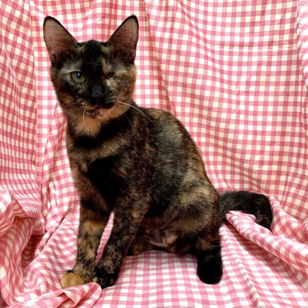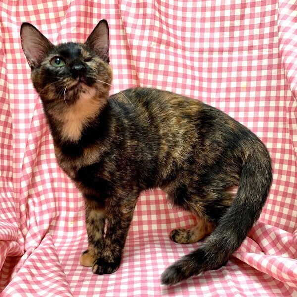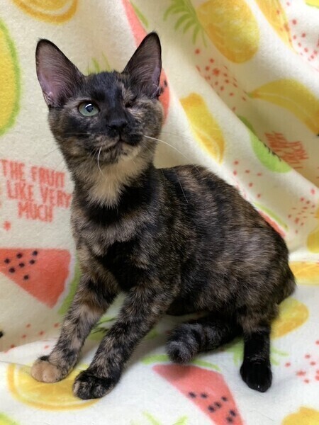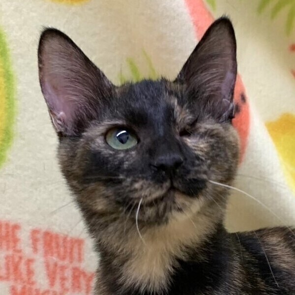 | 特徴(性格など) | 【仮名】ランランちゃん 【性格】とっても賢いランランちゃん♪ サビ猫ちゃんって魅力タップリなんですョ! 保護時の状態が悪く眼の状態も酷かったのですが 治療も頑張ったのでしあわせ探しします♪ 人が大好き、抱っこ大好きな超甘ったれさんです♥ オメメがウインクしてますが本人全く気にしてません! 毎日元気一杯にリンリンちゃんとニャンプロしてますよ♪ 目の状態はとても安定してますのでご安心ください。 先住ちゃんのいるオウチかリンリンちゃんとの お迎えをお願い致します♪ ※1ピキ譲渡応相談(先住あり) |