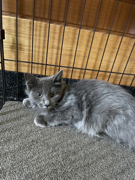 | 特徴(性格など) | グレー長毛。綺麗な顔立ちの穏やかな性格の猫ちゃんです。 今後ワクチン接種と時期がきたら去勢手術をする予定にしています。 ノミスポット済み。 |