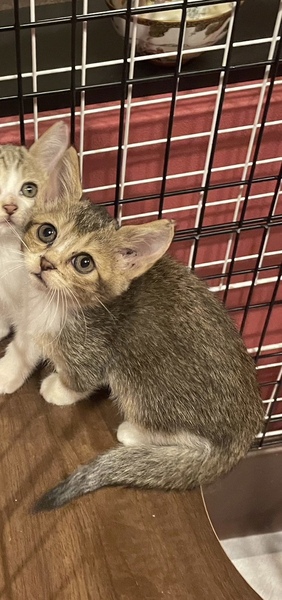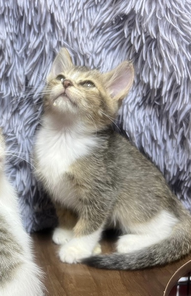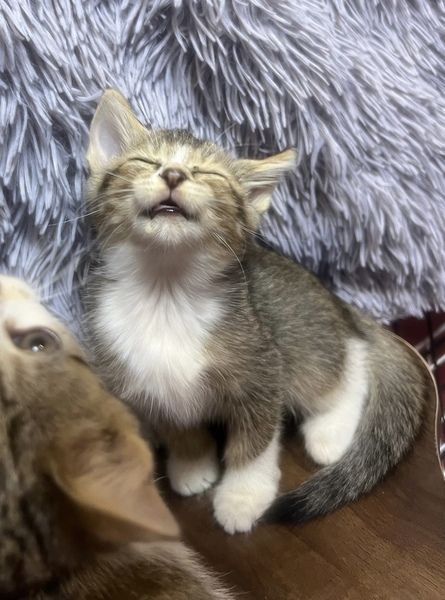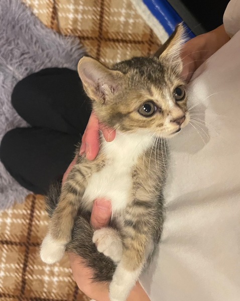 | 特徴(性格など) | 少し変わった毛色のキジ白の女の子 9/29 現在は一頭になり、だいぶ慣れて良く遊んでいます 保護時は人慣れ△ でしたが噛み付きはなし 兄妹と一緒にいたので強気にフーシャーパッパッダーン!していましたが、可愛いものですぐに見れなくなってしまいました お母さん猫が洋猫の血が入っているようなスムースタイプの美人さんでした(tnr済み この子も変わったウサギのような毛色です 9/24 生後6週くらい 670g 8月11日頃生まれ 早期不妊手術済み 母猫ウイルス検査両方陰性 手術済み ノミダニお腹の虫駆除済み お引き渡し時期により10月6日頃ワクチン1回目予定(費用別途) |