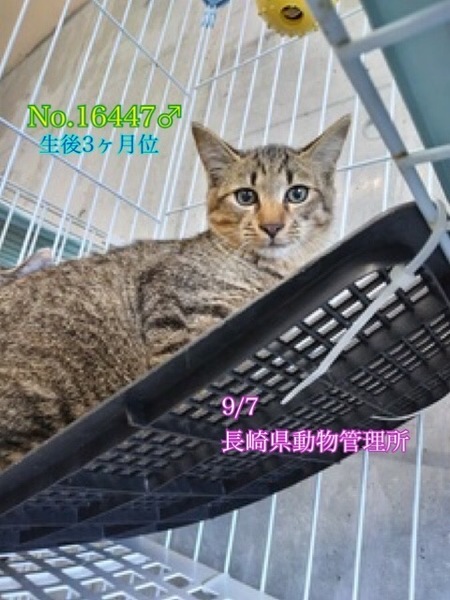 | 里親募集する理由 | まだ生後約3ヶ月位の可愛い甘えん坊チビにゃん君です♡ 長崎県大村市内にて餌やりをしていた高齢者によって持ち込まれ9/7に長崎県動物管理所へ収容となりました。 親猫と離れ離れになり突然連れてこられてどんなに寂しく心細いか。。( ; ; ) 1日も早く愛情に包まれながら温かい家庭の中で幸せになってほしいと願い里親様の募集をさせて頂きます⭐︎⭐︎ 素敵なご縁を待っています! どうぞ宜しくお願い申し上げますฅ( ̳• ·̫ • ̳ฅ)♡ ⭐️県外、遠方の方でも譲渡の条件が合い、良縁に恵まれましたら里親になっていただけますのでどうぞ宜しくお願い致します! ※ ※ 長くなりますが犬猫と里親様の幸せの為にも、募集内容を熟読し、必ずご家族とよく相談をされた上、ご家族全員の賛同を得られてからのお問い合わせ をお願い申し上げますm(_ _)m ☆家族の一員として迎えて下さる方、「引き渡し方法」のところにあります【①〜のアンケート】にご回答と、どちらの子をご希望かと共に、お問い合わせいただけますようお願い申し上げますm(_ _)m ♡人懐こくて元気いっぱい、まだ生後3ヶ月位まん丸クリクリおメメに長い尻尾、スリゴロの可愛いキジトラ男の子(^^) 当初から撫でたり触ったり人馴れには問題無い子でしたが今では自ら寄って来て甘えまくってくれます♡ 綺麗な毛並みでとても人懐こく、抱っこも大丈夫♪手からおやつも食べてくれてゴロゴロ言って甘えてくれます(^^) 猫砂でのトイレも出来ています。 この子ならきっと新しい家庭に馴染んでいけると思います♡ ⭐️完全室内飼育で、譲渡後速やかに病院受診、健康診断、混合ワクチン、生後4〜6ヶ月を目処に去勢手術をする事が可能な、なるべくお留守番の少ない、沢山優しく触れ合っていただけるご家庭。 ⭐️新しい環境に慣れるまで、もしかしたらトイレの失敗などあるかもしれませんが覚悟と根気・理解で受け入れて下さる方m(_ _)m ※混合ワクチン、ウイルス検査実績はありません。エイズや白血病陽性等の可能性も0では無くあり得ることとなります(>_<) 以上の点を踏まえ、この子の置かれている状況、寂しくて不安いっぱいの心をご理解のうえ、全て受け入れ寄り添っていただけるご家庭で終生可愛がっていただきたいと祈っております。 収容された全ての子達は身勝手な人間による被害者であり、何も悪くありません( ; ; ) 家族の一員として生涯大切にしてくださる優しいご家庭とのご縁が結ばれ、これからは幸せになれます様に☆⭐︎ 過酷な暑さにも冬の寒さにも、もう安心して快適に過ごせるお家が見つかりますように☆⭐︎ 残念ながら長崎県は犬猫殺処分数全国ワースト1位(令和3年度)です。 ☆猫を飼養飼育していく為には日々、食費、医療費、トイレシート、猫砂以外にも経済的に費用がかかります。 時にはいたずらをして困らせる事もあるかもしれません。 年をとれば人間と同じ様に介護も必要になります。 可愛い可哀想というだけの安易なお気持ちでのご応募は猫にとっても幸せな事ではありませんm(_ _)m 深い愛情と責任を持ち、終生完全室内飼育、愛情をたっぷり注いでいただける方 の、ご応募をお待ちしております(^O^)/ ⭐️ 直接のお迎えが難しい方、県外、遠方の方でも譲渡の条件が合い、良縁に恵まれましたら引き出しや空輸、搬送など出来る限りの範囲内になりますがボランティアがお手伝いさせて頂きます。ご相談下さいませ(^O^)/ 搬送時にはエアトラベルキャリーケースかケージが必要になります。 搬送交通費、キャリーは里親様ご負担となります。(キャリーはレンタルも可能です。後日管理所へ返送して頂きます) 運命の赤い糸♡素晴らしいご縁をお待ちしております(๑•ᴗ•๑)♡どうぞ宜しくお願い申し上げます! https://cat.benesse.ne.jp/withcat/content/?id=88240 https://youtu.be/LTZvSkOQAOo |
