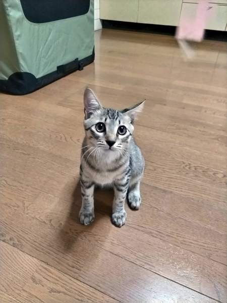 | 特徴(性格など) | 子猫 名前は、まんたろうくん ワクチン 8月16日、9月29日接種済み レボリューション 済み エイズ・白血病検査 陰性 ※6ヶ月以降に去勢手術をお願いします。 生後2ヶ月弱で保護した時は、怖がって触ることも出来ませんでしたが、触って撫でて、最近はおやつにチュールをあげていたら、抱っこ出来るようになりました。 撫でるとお腹も見せます。 |