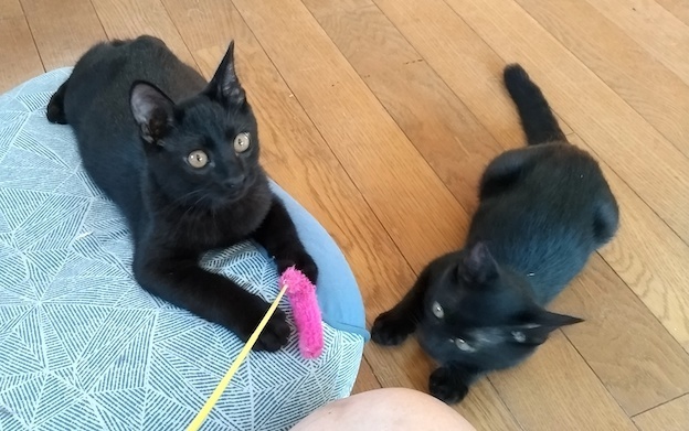 | 特徴(性格など) | 少し大きい方の子(黒豆)は活発的 少し小さい方の子(黒ゴマ)はおっとりした子です。 兄弟猫同士や、先住猫達と毎日元気よく遊び学んでいます。 運動量と先住猫との社会性には自信があります。 |