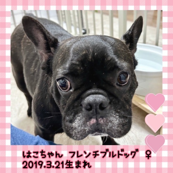 | 特徴(性格など) | 名前 はこ 種類 フレンチブルドック 色 ブリンドル 年齢 2019/3/21 性別 メス 体重 8.55kg 経緯 ブリーダーからの保護 ..................... ワクチン 5種混合接種済 フィラリア 陰性(ー) マイクロチップ 装着済 避妊去勢手術 済 メディカルチェック 聴診触診、血液、検便、異常なし 駆虫薬投与、ノミダニ駆除済、スケーリング済 外耳炎、パテラ 右G1 左G1 ………………………… 好奇心旺盛、活発な子です。 性格は穏やかで無駄吠えもありません。 お散歩も好きで素早いです。 トイレはシートで上手にします。 日常の様子はInstagramでご覧ください。 https://instagram.com/linkplus_wan.nyan?igshid=YmMyMTA2M2Y= |