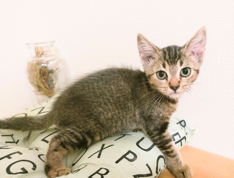 | 特徴(性格など) | 純血種アメリカンカールの子猫ちゃん 耳は立ち耳、色はブラウンタビーです。 好奇心旺盛、元気で可愛い甘えん坊の女の子です。 生後3カ月になりましたので、ドライフードもそのまま食べれられますし、初めて猫ちゃんを飼われる方にも丁寧にご説明致します。 子猫ちゃんの家族になってくださる方ご応募お待ちしています。 |