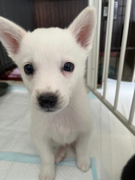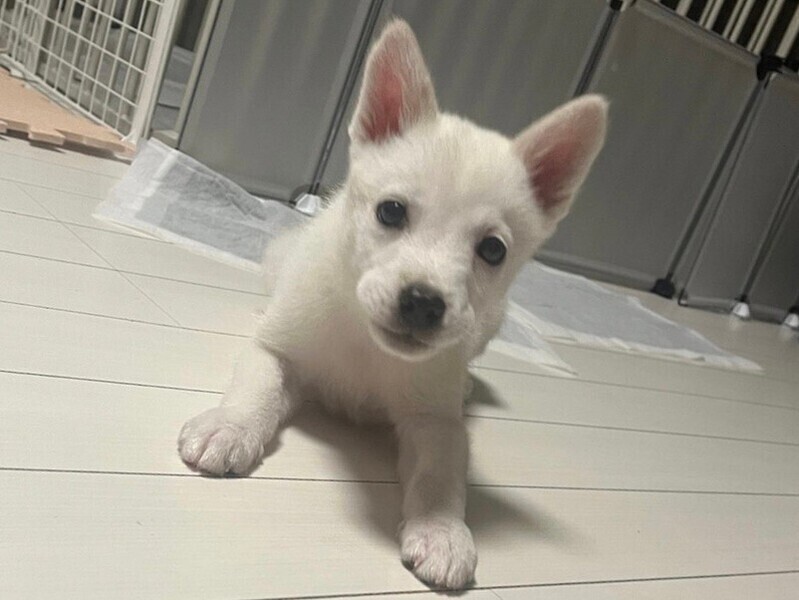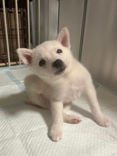 | 特徴(性格など) | 【仮名】カリー 【生年月日】推定2023年7月25日頃生まれ 【種類】MIX 【成犬時サイズ】中型犬(10〜15kg前後) 【毛色】ホワイト 【性別】オス 【去勢】適正時期になり次第飼い主さまで必ずお願い致します。 【混合ワクチン】済み 【駆虫】済み 【健康状態】良好。 【性格】保護当初は臆病な様子がありましたが兄弟とワンプロしながら楽しくすごしてます! おすわりが出来るようになって人にも慣れてきました(^^) フリーにすると凄い勢いで走り回って遊んでます! 【トイレ】だいたいシートにできていますが近くに無いと失敗することもあり成功率70%くらいです。引き続きトレーニング続けます! 【ケージ】 留守時間や就寝時に利用しています。 |