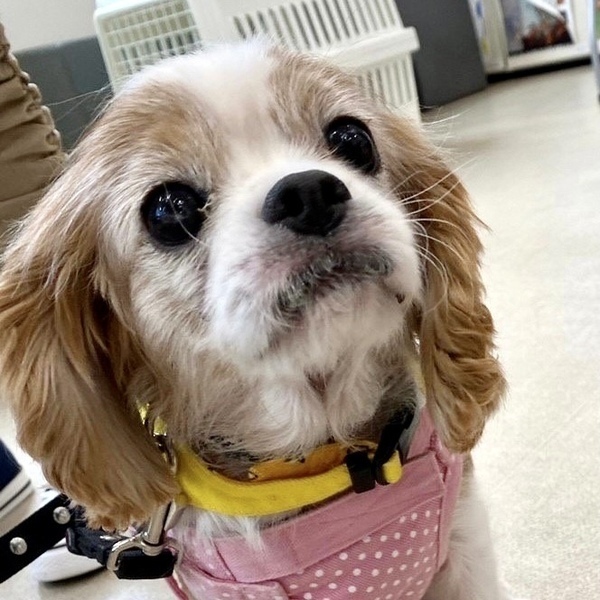 | 特徴(性格など) | 性格・特徴 とても人懐っこく、いつもニコニコ明るい女の子です。 しっぽをブンブン振りながらそばに寄ってきて、ナデナデされるとへそ天しちゃうところが可愛くてたまりません。 他犬とも上手に過ごすことができます。 【ご飯】 ドライフード(シュプレモでお願いします)40gを、1日2回食べています。 フードは急な変更でお腹を壊さないよう、シュプレモでお願いします。 【トイレ】 トイレシートの認識はまだありませんので、引き続き気長にトレーニングをお願いします。 トレーニングのご相談は承りアドバイスさせていただきます。 【お散歩】 上手にお散歩が出来るようにトレーニング中です。引き続きトレーニングをお願いします。 迷子札は、首輪に刻印式のIDカラーで装着して頂く事と、ダブルフック型ショルダーリード使用のお約束をお願いします。 【お留守番】 サークルでお留守番しています。寝る時もサークルで寝ています。 (ソフトサークルは禁止とさせていただきます) 健康状態 ※ 医療に関しまして、当会では、里親様にお繋ぎするまでに、検査や手術、治療等のレスキュー団体で出来る最大限の努力の上で譲渡活動を行っております。ご理解頂ける方のみご応募ください。 名前 ひまわりちゃん 犬種 キャバリア・キング・チャールズ・スパニエル 年齢 9歳くらい(推定) 性別 女の子 体温 37.5度 体重 5.4kg 口腔 歯石除去 歯肉炎等処置済み 皮膚 保護前の劣悪な環境によると思われる皮膚炎があり内服治療をしています 耳 日常のお手入れをお願いします 心雑音 1/6〜2/6 (様子見との診断です。医師の聴診によるもので、その日の体調もあり、あくまでも変動があります。) 検便検査 異常なし 血液検査 異常なし フィラリア 陰性 レントゲン 済み 避妊手術 済み 心電図 異常なし ノミダニ予防 済み ワクチン 済み(2023.9.15) 虫下薬 投薬済み(2023.7.29) 狂犬病予防注射 猶予証明取得済み 畜犬登録 済み 【その他】 レントゲンの結果、胆石がありましたが治療の必要はなく経過観察しています。 |