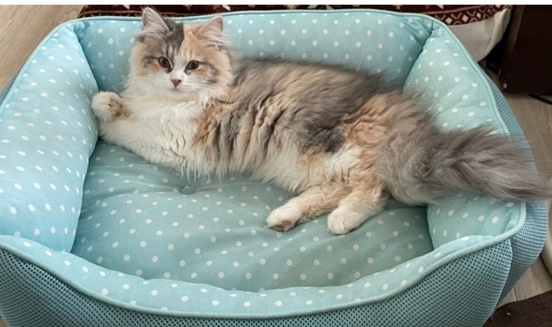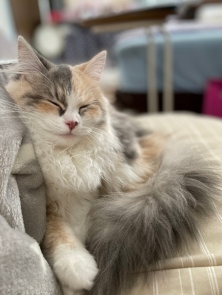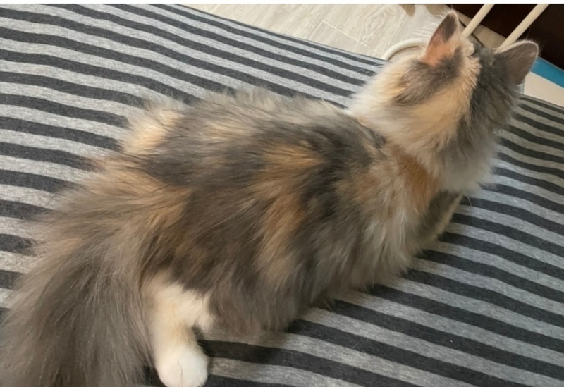 | 特徴(性格など) | サイベリアン ダイリュートキャリコ(三毛猫) 甘えん坊で飼い主が自分の視界に入るところでまったりしてることが多く、たまに甘えてきます。(なので視線を感じます。)帰ってくるとニャーとお出迎えしてくれます。 猫じゃらしで遊んだりするのが好きです。 |