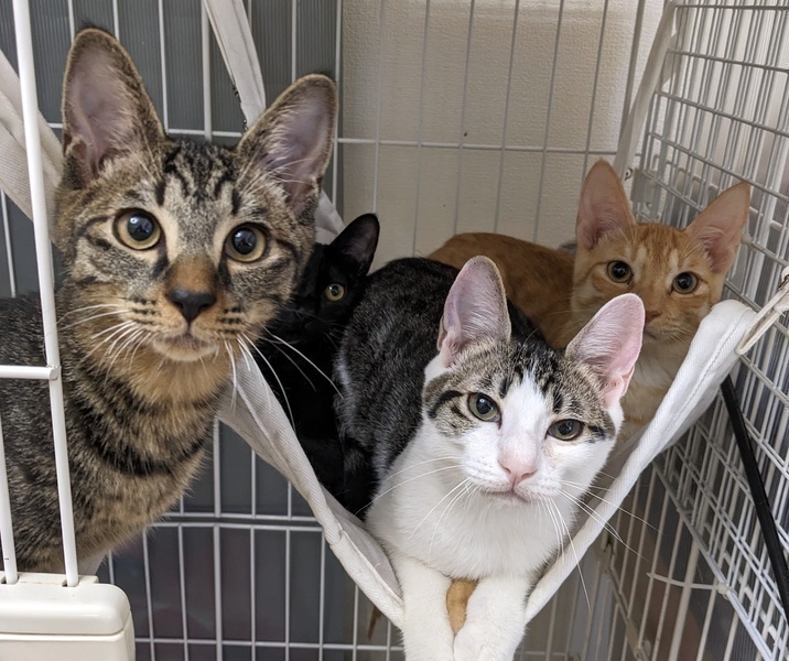 | 里親募集する理由 | 子猫がたくさんいるとの情報をいただき、駆けつけたところ、母猫4匹と子猫たちがいました。 餌やりさんも途方に暮れている状況でした。親猫はTNR、子猫は保護する事になりました。 兄妹としていますが、同時期に生まれ、一緒に育った子たちです。どの子とどの子が兄妹か、本当のところはわかりませんが、とても仲良しです。 |