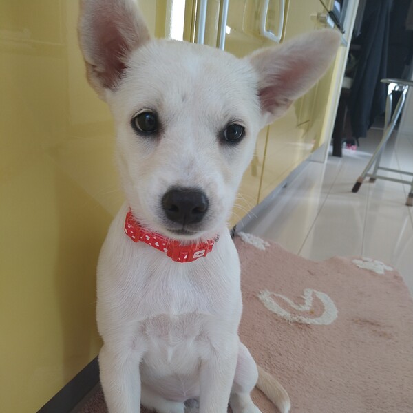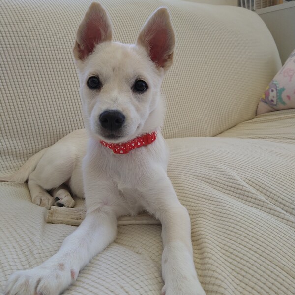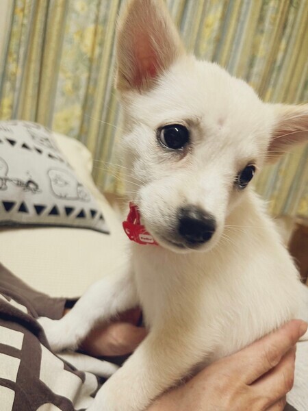 | 特徴(性格など) | 【仮名】るり 【生年月日】推定2023年7月25日頃生まれ 【種類】MIX 【成犬時サイズ】中型犬(10〜15kg前後) 【毛色】ホワイト 【性別】メス 【去勢】適正時期になり次第飼い主さまで必ずお願い致します。 【混合ワクチン】済み 【駆虫】済み 【健康状態】良好。 【性格】臆病で始めて会う人には逃げてしまいますが、慣れると耳をペタンコにして甘えてきてくれます! なかなかのやんちゃ姫で走るのが好きなようで兄弟犬、預かり宅の犬達が寝ていても1人で暴走して遊んでいます(^^) 優しく可愛い女の子です。 【ゲージ】お留守番、就寝、人間のご飯中はゲージでおとなしくしています。 【トイレ】90%くらいです。 はみだしたり、手前でしちゃったりがあります!トレーニング続けます。 |
