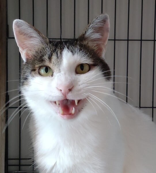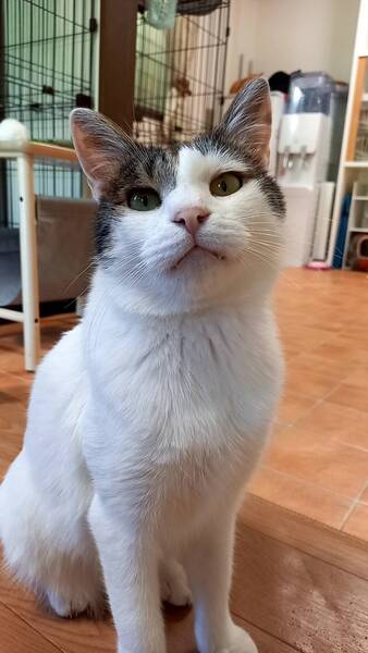 | 特徴(性格など) | 仮名:ハク 毛色:ほぼ白猫で、額としっぽにキジトラ模様が出ています。 瞳の色:薄い茶色 尻尾:細くて長い尻尾 性格・特徴:甘えん坊でおとなしく賢い良い子です。 かわいい声で人を呼び、スリスリ、ゴロゴロ、お腹を見せて甘えます。なでなでも猫じゃらしの遊びも大好き。 ラク君ととても仲がいいので、2匹でお家に迎えていただけるとありがたいです。 トイレのしつけ済み。 右耳に桜カットあり。 健康状態猫白血病、猫免疫不全ウイルスともに陰性です。 ノミ・ダニ・お腹の虫の駆除済み。 右耳に桜カットあり。 幼いころの猫風邪の名残で涙目があります。 |