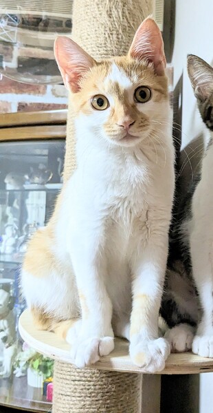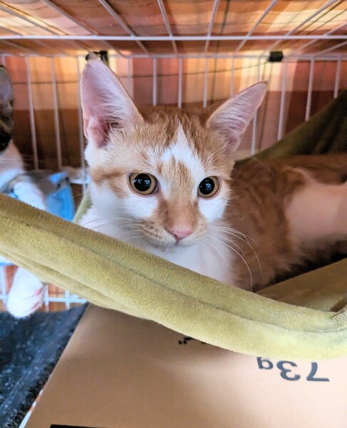 | 特徴(性格など) | 茶白で顔は丸く見ているだけで癒やされます 性格は穏やかでよく食べ、よく遊びます |
