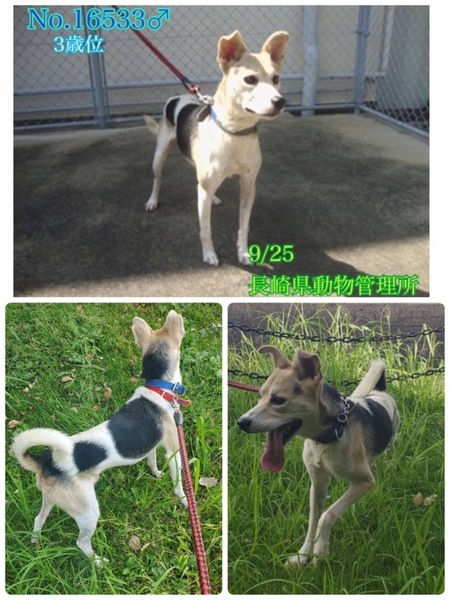 | 里親募集する理由 | ご覧いただきありがとうございます♡! 【 ①〜⑰のアンケート】にお答え頂けない方、アンケート内容が曖昧な方は、譲渡のお話を進めていけない為、 お返事は致しかねますので予めご了承くださいませm(_ _)m↓ ♡人が大好きなとっても可愛い甘えん坊男の子。推定になりますがあどけなくまだ若くて3歳位?小柄な中型で体重は10キロちょっと位に見受けられますฅ•ﻌ•ฅ 明るくて元気はつらつ、わちゃわちゃしてます(^^) 飼主は高齢で施設に入所、親族が飼えないからと9/25に保健所へ持ち込み、現在は長崎県動物管理所へ移送されてきています。 犬はどんな飼主でも信じています。 信じてきた飼主さんは居なくなり、何もかもが初めての知らない場所、環境の中で今どんなに寂しい思いでしょうか( ; ; ) 寂しく助けを待っています! 訳も分からず突然連れて来られてどんなに寂しく心細いか。一日も早く温かい家庭の中で過ごさせてあげたいです。 ⭐️県外、遠方の方でも譲渡の条件が合い、良縁に恵まれましたら里親になっていただけますのでどうぞ宜しくお願い致します! ※ ※長くなりますが犬猫と里親様の幸せの為にも、募集内容を熟読し、必ずご家族とよく相談をされた上、ご家族全員の賛同を得られてからのお問い合わせ をお願い申し上げます。 ⭐️外飼いでは無く、室内飼育で家族の一員として迎えて下さる方、「引き渡し方法」のところにあります【①〜のアンケート】にご回答と共にお問い合わせをいただけますよう、お願い申し上げますm(_ _)m ◎尻尾フリフリとびきり人懐こく他犬に対してもフレンドリーな性格花丸君です♡ 誰が何処を触っても大丈夫、遊んでほしくてかまってほしくて擦り寄って甘えてきて本当に可愛いです(^^)お子ちゃまパワー全開♪といった感じで興奮して遊びに夢中になったり、犬舎に入りたくない時には甘噛みしたりします、元気に飛びついてきたりもします。(本人は陽気で遊び、甘えのつもりです(^^;; ) 無駄吠えしたりせず、他犬にも仲良く挨拶しています。お座りやマテ、お手などは何も知らないようです。 ◎痩せ気味です。今は毎日2回、ご寄付で送って頂いた栄養価の高い良質なドライフード(ネイティブドッグフード)とデビフ缶詰を食べさせています。 ずっと外で生活してきて可哀想に爪も伸びています。 綺麗にブラッシング、シャンプーをして栄養をつけたらもっと凛々しい美犬クンになる事でしょう(^O^)/ ずっとそんな悲しい状況のままでいたより保護されて良かった!と考え、この子に幸せを、室内で一緒に暮らせる温かい本当の本物の家族を見つけたいと願っております⭐︎⭐︎ 優しい職員さん方が怖くないよ、今度こそは幸せになれます様にと毎日触れ合いながら、一生懸命にお世話してくださっています。 職員さんが連れ出してくれるお散歩も、嬉しくて楽しそう♪出だしは引っ張りますが興奮がおさまれば落ち着いて普通にお散歩出来ます、小ぶりですし問題無く制御出来る程度です。 ※ですが、急な物音や知らない場所にビックリして怖がって、咄嗟に逃げようとする可能性も大いにあり得る事だと思いますし、その時の力、引きの強さも想定し、突然の走り出しや高い塀や壁・柵の飛び越え・急な方向転換や首を振って後退りからの首輪抜け、胴輪抜けにはご用心です!! まだ呼び戻しも覚えていないので、もし逃がしてしまったらピューっと走って行ってしまうタイプかもしれません!(>_<) もし逃がしたらもう捕まえられない!というようにお考えくださいm(_ _)m ※繰り返しになりますがどんな子であっても、慣れてきても、常に、脱走・逃走には充分な注意と最大限の配慮をお願いしております! この子のペースや体力をみながら、毎日朝晩のお散歩、必要な運動の時間をしっかり取ることの出来るご家庭、 譲渡後には早急な病院受診が可能なご家庭を希望しておりますm(_ _)m 人間が焦らずにゆっくり見守りながら、愛情を持って接し、しっかりとお散歩にも連れ出して行けば、この子ならきっと新しい家庭に馴染んでいけると、ただ思い切り甘えて目一杯遊んでほしいのだと思います。 辛かった過去があるという点も踏まえ、人は怖くないんだよと、ずっと人を信じてくれる様に、広い心でドンとこい^_^と仰って頂ける方、この子をこの先も尻尾フリフリ♪で、ニコニコの笑顔にしてくださる方、いらっしゃいませんか? どうぞ宜しくお願い申し上げますm(_ _)m ⭐️必ず室内飼育で、譲渡後速やかに病院受診、健康診断、(血液検査、尿便検査、ノミダニ・フィラリア予防や爪切り、シャンプー等)混合ワクチン、去勢手術をする事が可能な、なるべくお留守番が少ない、沢山優しくスキンシップやコミュニケーションで触れ合っていただけるご家庭。 ⭐️フィラリア予防実績、混合ワクチン接種歴はありません。 フィラリア陽性の可能性も有り得る事となります(>_<) ⭐️室内でのトイレの躾も1からとなります。 未去勢で片足を上げて排尿し