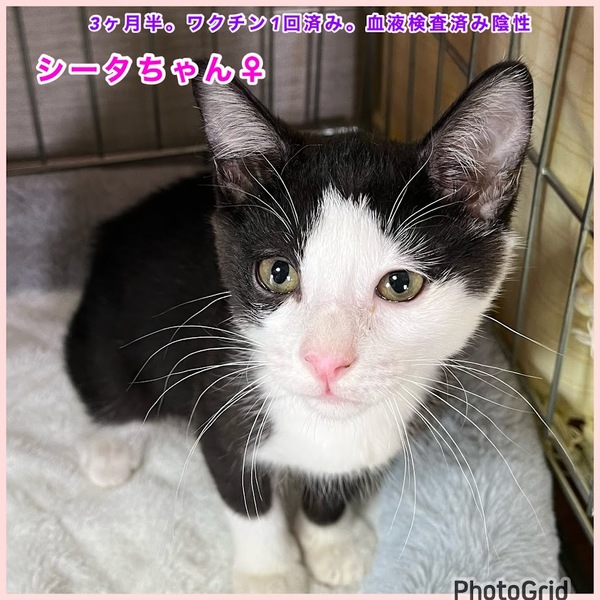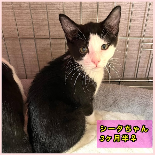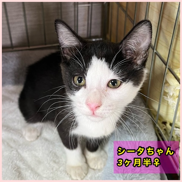 | 特徴(性格など) | シータちゃんは、横流し前髪が個性的な子。 4ヶ月ぐらいです。 元気で人懐っこい社交的な子です。 ノミダニ駆除、検便済み。 ワクチン1回済み。 血液検査済み陰性。 譲渡会にも参加しますが、個別のお見合いにも対応します。 |