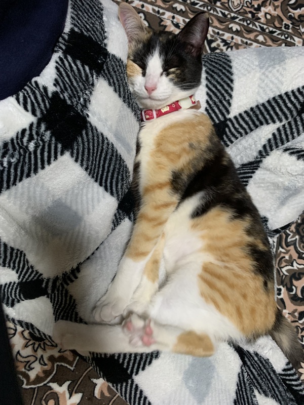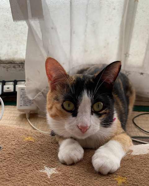 | 特徴(性格など) | 三毛猫で、性格は慣れれば甘えん坊で、おもちゃで遊んでもらうのが大好きです | ||