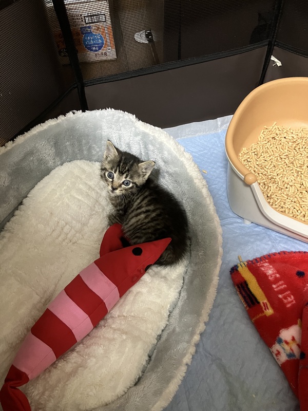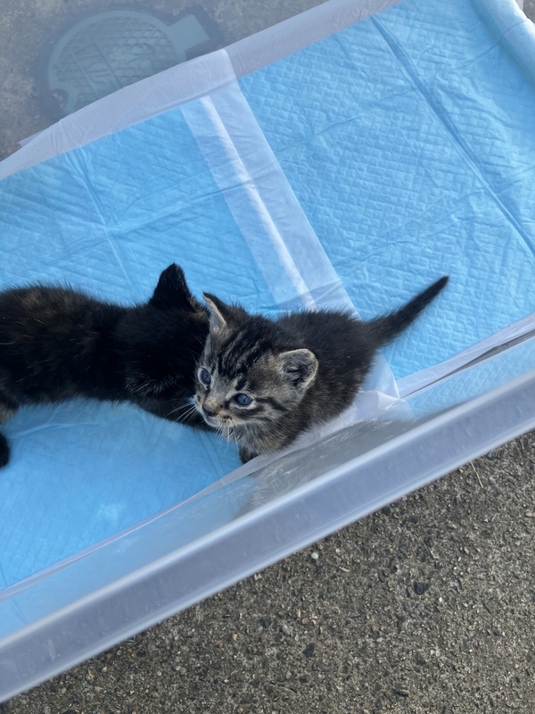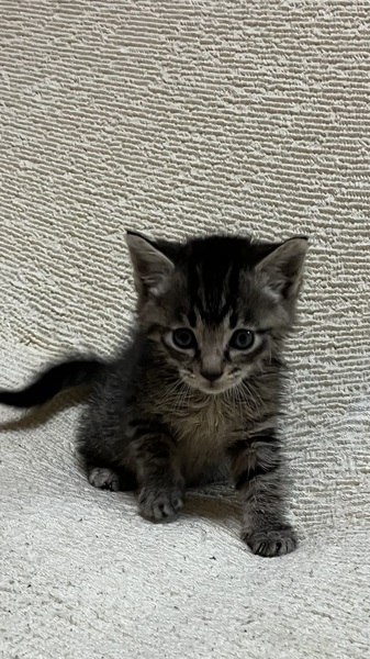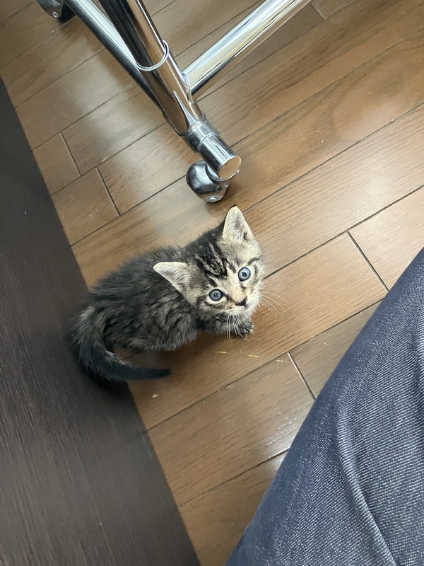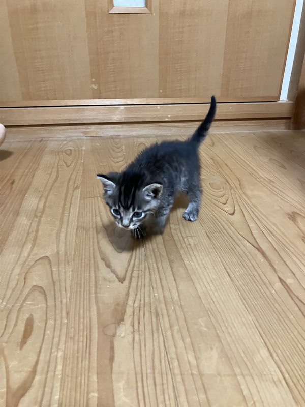 | 特徴(性格など) | キジトラ猫 おとなしい子猫です。離乳食を食べてます 母猫から母乳をもらっていたようです。 怪我などはありません。 |