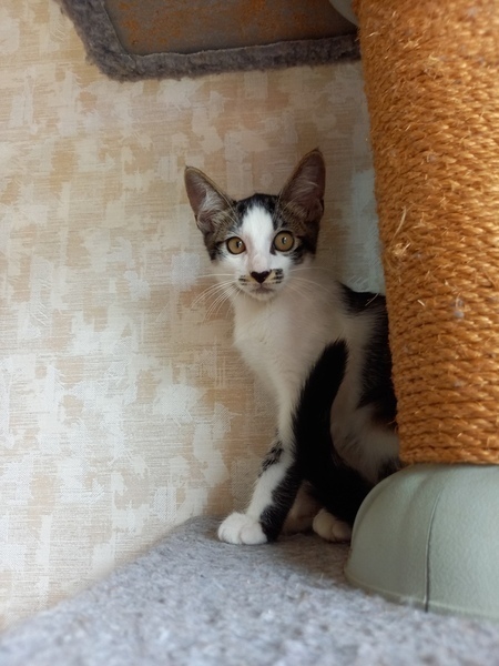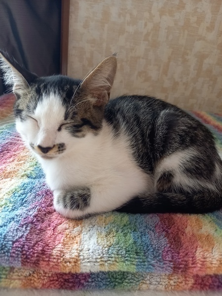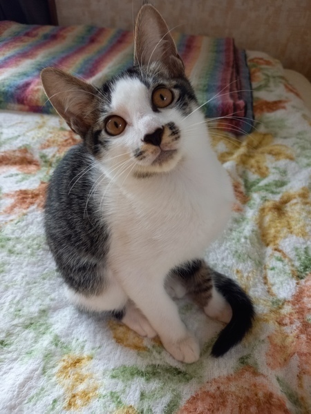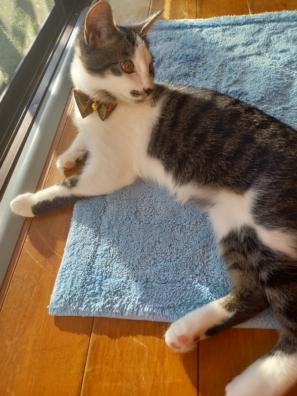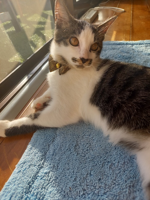 | 特徴(性格など) | 三兄弟の中で 人間 先住猫にも慣れるのが一番早く 好奇心旺盛で頭が良い子です。 ご飯の時には、長いしっぽを立てて おしゃべりするように催促して鳴きます。 ワクチン一回 (9/5施行) FIV(エイズ) FeLV(白血病) 共に陰性です。 排便、尿の状態も良く問題はありません カリカリ、ウエット共に良く食べ、兄弟猫達のリーダーの様に遊んでいます。 |