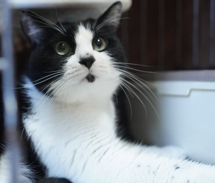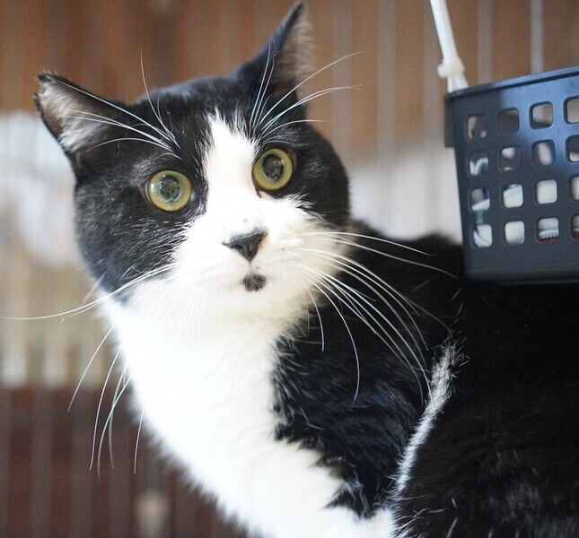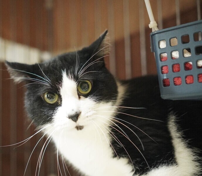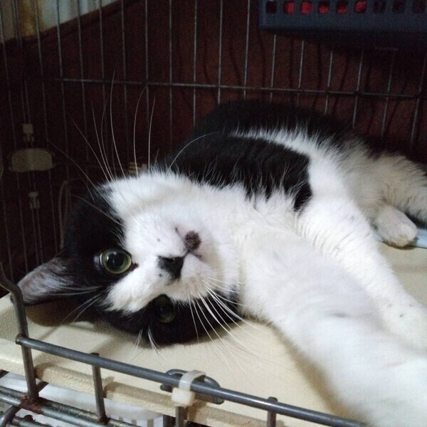 | 特徴(性格など) | ◆チョピンくん 人慣れしている黒白ハチワレ男子 ○東京都内で高齢者の飼い主が亡くなったため保護しました。 ○推定4歳くらい(2023年10月時点)の黒白ハチワレの男の子です。鼻の頭のハート型の斑と、下唇の小さい黒斑がチャームポイントです。体重は4.2kg(2023年9月23日時点)です。 ○しっぽは真っ直ぐです。 ○人慣れしています。 ○ちょっと気が強そうです。 ○甘噛みするクセがあります(撫でたりしている時や甘えようとする時に、手を噛み噛みしてきます)。 ★ワクチン1回済み、不妊手術済み。 ★猫エイズ、猫白血病ともに陰性。 ☆単身のかたはご相談ください。 ★★お見合いを設定することも可能です。まずはお申込みください★★ |