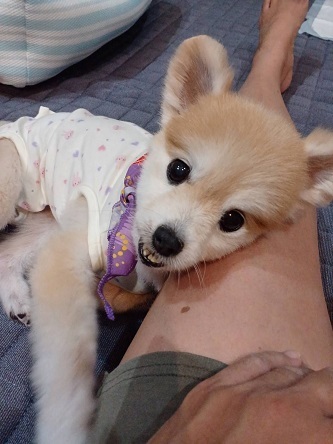 | 特徴(性格など) | ポメラニアンの女の子 ももちゃん 性格100点満点! 甘えん坊で、誰とでも仲良く暮らせます。 他の犬とも、子どもとも、猫さんとも平和に過ごせます。 年齢的にも、おとなしく寝ている時間が長いです。 誰かが座っていると、しっぽフリフリ♪近くにやってきます。 家族に迎えていただいても、すんなり自然になじんでいくタイプの子です。 こんなにいい子ですが、 保護時には大変体調が悪く、いろいろな診断、治療を行ってきました。 病名は、巨大食道症です。人間にもある疾患で、食べたものが胃に入らず、吐き戻してしまいます。 お腹が空いて食べてもすぐ吐く、をずっと繰り返し、どんどん痩せてしまいます。 いろいろな対処法があるのですが、ももちゃんの場合は、胃瘻(いろう)がいいだろうと処置をしていただき、その生活もすっかり慣れました。(胃瘻➟お腹あたりにつけてあるチューブから液体のご飯を直接胃に流し入れます)流しいれた後、抱っこひもを使って、縦抱きの抱っこをします。食事は1日3回です。 水もチューブから入れます。 こういった処置は、初めはとても緊張しますが、慣れたら誰にでも可能です。 犬猫の看病、介護や、人間でも特別なお世話の経験がある方には、イメージしやすいと思いますが、 慌てず、基本通り、が大切です。 自信がつくまで、しっかりレクチャーさせていただきます。 日々のお世話の中で、こういう処置がある子は、なんだか特別な絆が生まれてきます。 かわいいももちゃんを守るため毎日抱っこする時が、癒しの時間になっています。 これ以外は、 普通のわんこたちと同じ毎日を送っています。 |