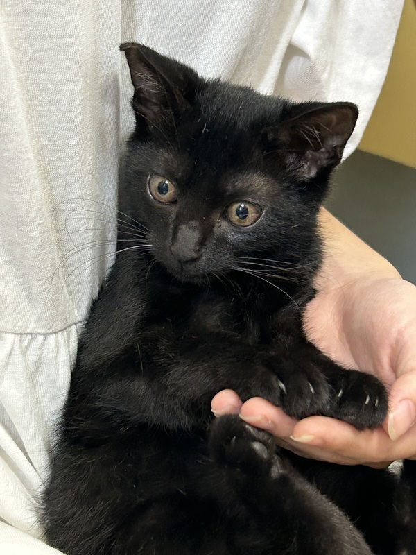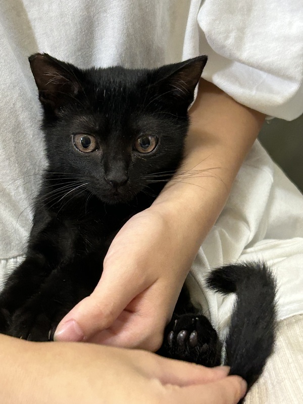 | 特徴(性格など) | 黒猫のクロちゃんとてもハンサムな黒猫でまだ人慣れ訓練中なので隠れてしまう事が多いですが抱っこして撫ぜていると段々リラックスしてくれます。 | ||