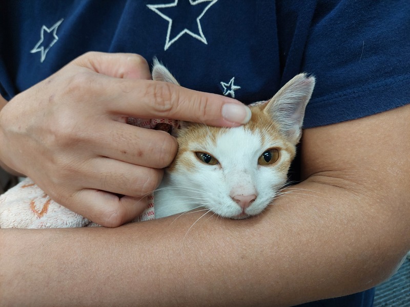 | 特徴(性格など) | 茶トラ(茶白)カドちゃん(仮) 避妊手術済、猫エイズ陰性、白血病陰性、ブロードライン済み 性格:少しだけ怖がり、アボチャンと一緒だと安心してます 抱っこ、ナデナデできます。 シャーはしないです。 トイレ習得済 |