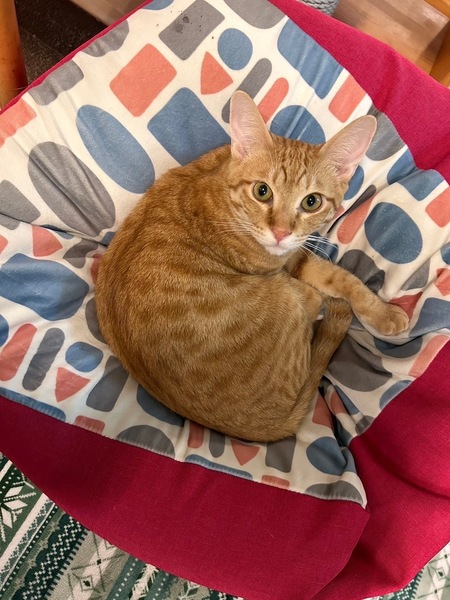 | 特徴(性格など) | 仮名はコロンくん、毛色は茶白 性格:花丸元気男子です!じゃらしとおやつ、大好きな健康優良児です! 運動能力高いのでしっかり遊んでくださる方、脱走防止対策をしっかりしてくださる方を希望します。 猫エイズは陰性、猫白血病も遺伝子検査済で陰性が確定しています。 |