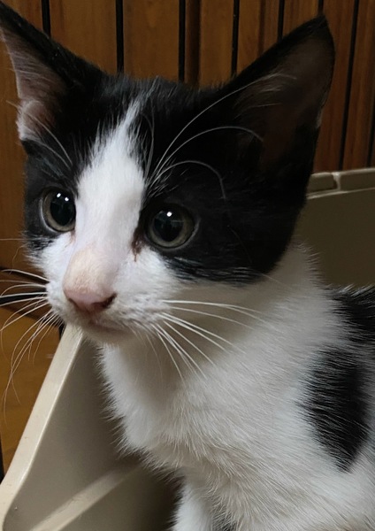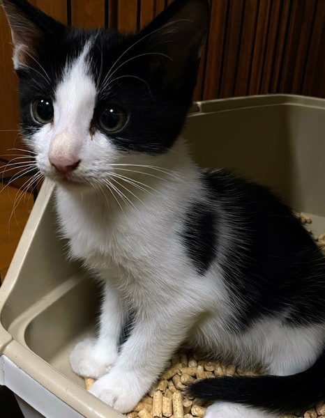 | 特徴(性格など) | 2ヶ月くらいの男の子です。 まだ、人馴れしているとは言えませんが、好奇心も少しずつ出てきて、環境になれつつあります。他の猫とも仲良くしています。 |