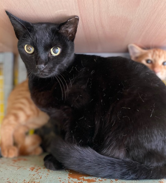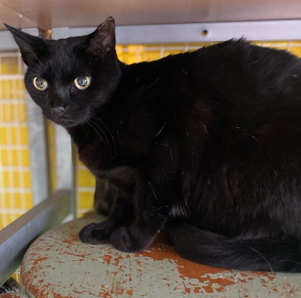 | 特徴(性格など) | 真っ黒な女の子です。 出入り自由で飼育されていたようですが、飼い主さんが高齢のため、新しい里親さんを見つけることになりました。 まだ緊張はしていますが、他の猫とは仲良くしています。 穏やかな性格だと思います。 エイズ、白血病検査は陰性。 体重、4キロ |