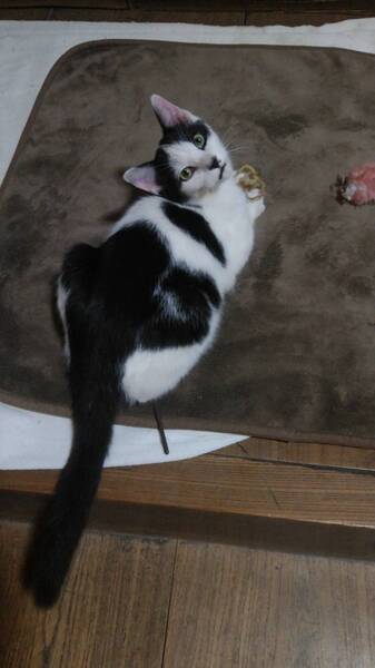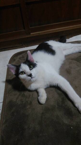 | 特徴(性格など) | ちょっぴりビビりな性格ですが、いったん慣れるとベタベタに甘えるタイプです。 小さい頃はずっとちびっこでした。 体が大きくなりましたが気は小さいままの、三兄弟の三男坊です。 猫用トイレの使用できます。 ごはんの好き嫌いはありません。 |