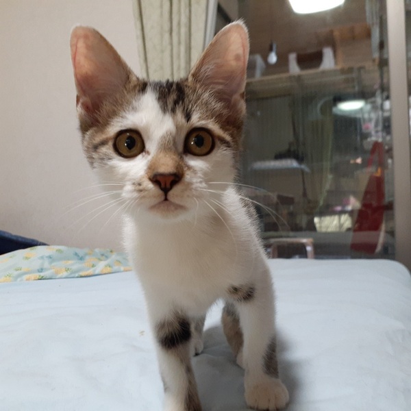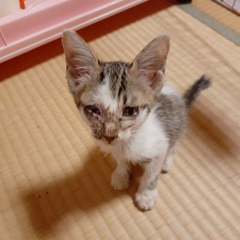 | 特徴(性格など) | 甘えん坊な女の子。 保護時、風邪をひいて目ヤニで汚れていました。 風邪が治って、きれいになってきました。 人馴れしていますので、猫が初めての方にもお薦めです。 |
