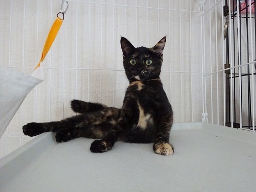 | 特徴(性格など) | 撫でるとゴロゴロ、抱っこしてもゴロゴロです 小さくて可愛いい黒サビの女の子です 猫との生活が初めての方にもお薦めです |