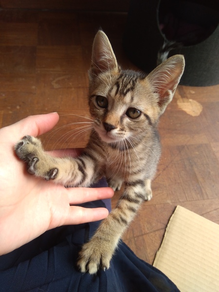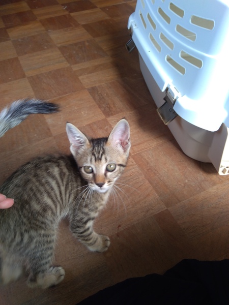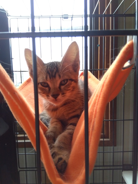 | 特徴(性格など) | 雉猫ちゃんです。 人に慣れているのかかなり人懐っこく、初日から抱っこしたりスリスリしたり、フミフミしたりしていました。 保護から4日しか経っていませんが、もう肩に乗ったり鼻にチューしたりします。 ほっぺたにスリスリしてゴロゴロいってます。 めっちゃ人懐っこいです。 親戚やその子供にも会わせた際、全然警戒心なく懐いていましたが、男性は合わせたことがないので不明です。(おそらく大丈夫かと思いますが) トイレはちゃんと猫トイレでしました。(ベントナイトの猫砂です) 頭が良い子だと思います。 私が家を出る時はニャーニャー鳴いていますが、すぐ鳴き止みハンモックやキャットタワーの上で寝ています。 神経質なタイプではないかも知れません。 活発なタイプだと思います。 |