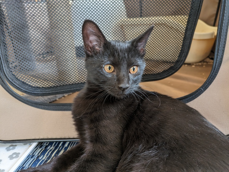 | 特徴(性格など) | とてもわんぱくな黒猫君です! 6きょうだいの中で一番元気で活発です。 しっぽが短くてとてもかわいいカギしっぽですよ! |