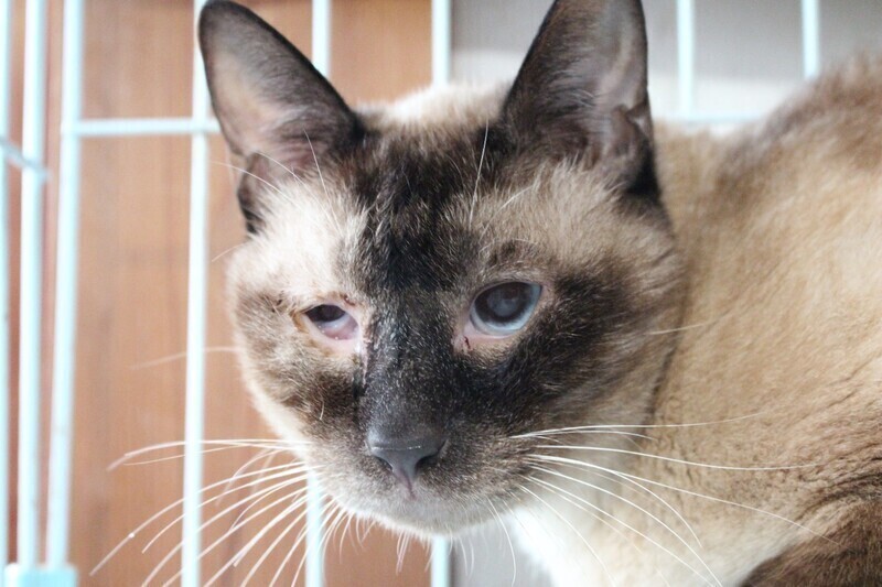 | 特徴(性格など) | シャム猫の男の子、シャイくんです。 すこし怖がりさんですが、気は優しく怒りません。 ひとりが落ち着くようなのでケージで生活してもらっていますが、最近は猫じゃらしに反応してくれるようになりました。 チュールやウエットタイプのフードが大好きで、ごはんを見せるととても喜びます^^ シャイくんが安心して過ごせるおうちをさがしています! 当団体のホームページや他のサイトでも同時に募集を行っています。少しでも気になられましたら、どうぞお早めにお問い合わせくださいね。 |