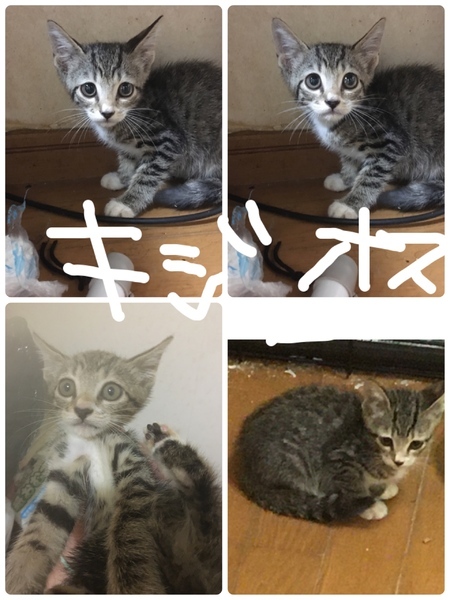 | 特徴(性格など) | 足袋はいてます。 キジトラ柄でキレイなまっすぐなしっぽです。 人馴れしております。元気いっぱい ほんとすばしっこくてあそび上手な子 他の猫も大丈夫そうです |