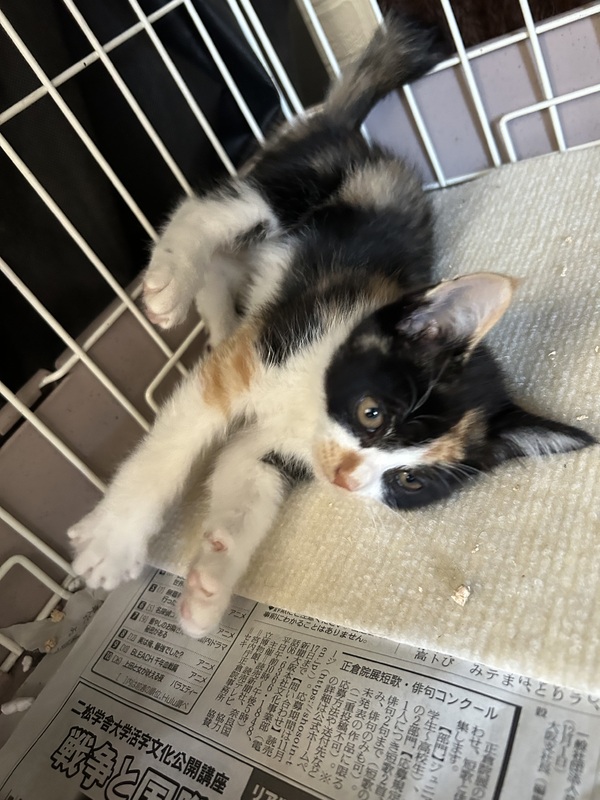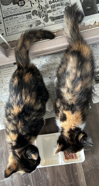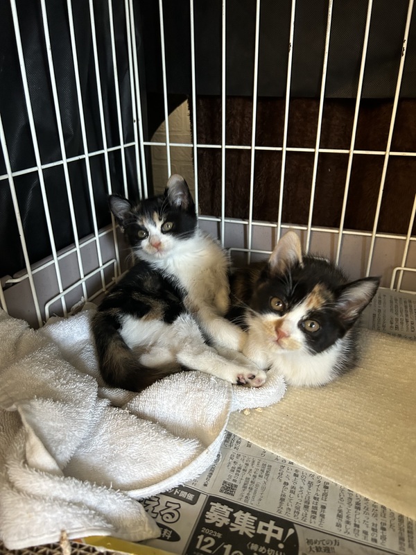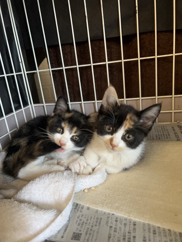 | 特徴(性格など) | 三毛猫ちゃんです。 姉妹で仲良し。甘えた&ビビリかもです。 |