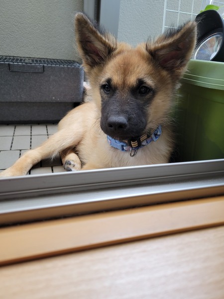 | 特徴(性格など) | 黒茶 シェパード似3ヶ月現在7㎏ (推定20~25㎏) カギしっぽですが、散歩、排便時しっぽは上がります。 【性格】 気が強いせいか、興奮するとコントロールが難しい時があったりします。 お散歩好きでいつも楽しそうです。 散歩中に人と会うとうれションするほど、愛想良しです!? 顔を触られるのが嫌でお口が出て、噛みついたりするのでしつけをお願いしたいです。 (甘噛み超えて、やや強めです) 【トイレ】 散歩時、排泄可能 室内フリーでトイレシートで排泄可能ですが、ゲージ内では、排泄あまりしない。 トイレシートをかじってイタズラあり。 【食事】 ドライフード3回 食べたり、残したりします。 【排泄】 最初は、螺旋菌がいましたが、現在いません。 ですが、腸が弱いのか良く下痢します。 ゲージ内で待機出来ますが、足をかけられるゲージですと上に登って脱走しましたので今は別のゲージで対応してます。 車移動時、車酔いして吐きます。 |