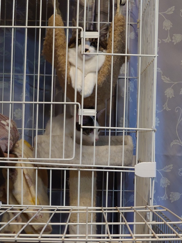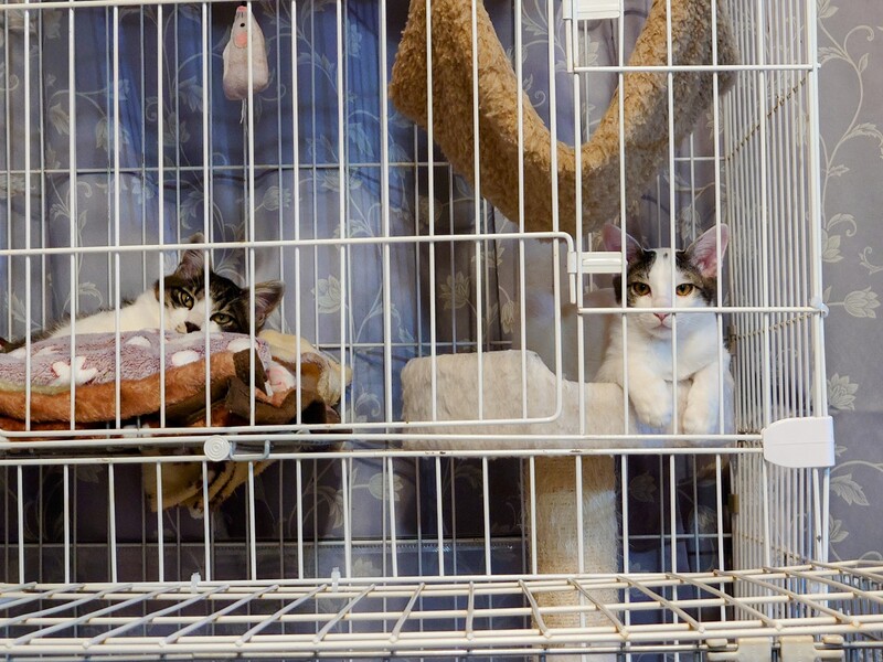 | 特徴(性格など) | 黒白ちゃん とても懐っこくて抱っこ大好き元気な男の子です しっぽが長いです。 白ちゃん 少し臆病ですがよく食べよく遊び元気な男の子です。 |