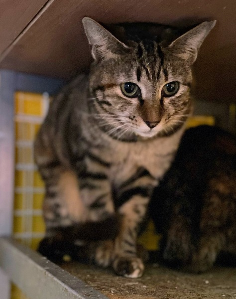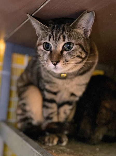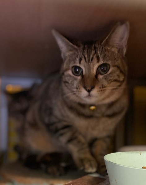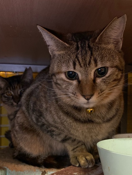| 特徴(性格など) | サビの女の子です。 おとなしく、落ち着いた感じですが、ご飯の時間は、とても元気になり、他の子のご飯まで覗きに行っています。 エイズ、白血病検査陰性です。 体重2.7キロ |