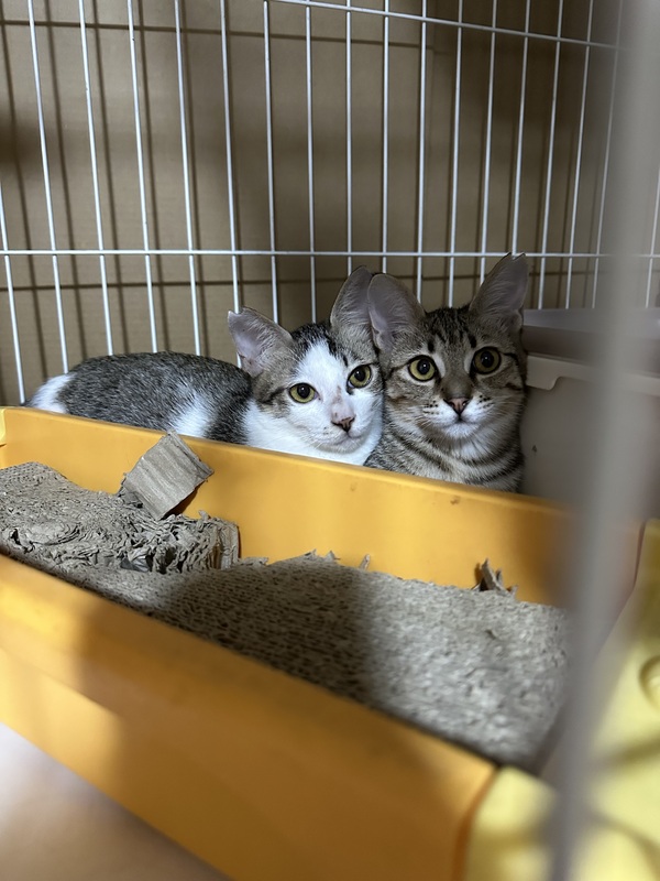 | 譲渡費用(医療費、交通費など) | 1匹 20,000円 避妊、去勢手術、ワクチン、初期検査済み エイズ、白血病陰性 カリカリも缶詰も何でもよく食べます。 快眠、快便、トイレもバッチリ 2匹いつもくっついて寝てます。 |
