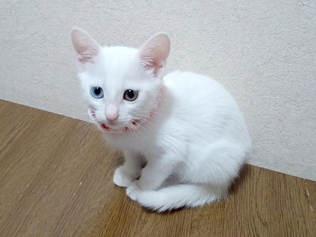 | 特徴(性格など) | ☆☆☆ご希望の方は、以下のアンケートフォームにご記入の上、送信してください☆☆☆ ねこ親希望アンケート→ http://chibawan.net/contactform_cat 【猫No】3727 【愛称】 ギム 【性別】 メス 【年齢】 推定2ヶ月(23/10/10現在)(23/7月末~8月初生) 【毛色】 白 【体重】 0.7kg(23/10/10現在) 【状態】 ワクチン1回済(23/10/4)、血液検査(猫エイズ陰性・白血病陰性)、ノミダニ駆除済、駆虫済、トイレ躾済 【預かり場所】 千葉県船橋市 【日記】 https://www.instagram.com/jasmine81865/ 【経緯】 柏市動物愛護ふれあいセンターより引き取り 【性格】オッドアイの白猫女子です。 一緒にセンターから引き出した兄猫はサバトラでどちらもとても綺麗で美男美女兄妹です。 とても人懐こくてお膝の上が大好きです。抱っこは長時間は苦手です。 ニャンプロしたりおもちゃを追いかけたり仲良く兄妹で遊んでいます。 食欲もあり元気に遊びますがどちらかと言うと大人しい子達です。 お留守番も出来ますし、夜はケージで大人しく寝るお利口さんです。 【補足事項】 兄猫レット(サバトラ・オス)と一緒にお迎えして下さる里親さんを募集します。 仲良しの兄妹なので一緒ならお留守番も寂しくなくて安心です。 ※1匹のみご希望の場合は恐れ入りますが他の猫ちゃんをご検討下さい。 大変申し訳ございませんが、仔猫のためお一人暮らしやご高齢の方のみのご世帯は お申込みをお断りさせて頂きます。 また長時間お留守をされるご家庭の場合も、 条件によってはお申し込みをお断りさせていただく場合がございます。 ※お試し生活は、不妊手術などの医療処置が全て完了してからとなります。 (11月初旬手術予定) 【その他】愛情いっぱいの終生飼養、ネコにあった生活スタイル、完全室内飼育、 脱走・迷子防止対策、定期的なワクチン接種などの健康管理をお約束いただける 千葉県船橋市から1時間以内のご家庭で、 アンケートに快くお答えいただける方からのお問い合わせをお待ちしています。 |