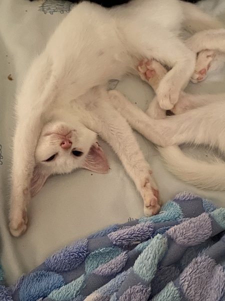 | 里親募集する理由 | 私の不注意で近親交配で生まれ、育てるつもりで、半年間一緒に居ましたが、同居人の虐待が発覚し、私一人では守りきれないと思い、募集しました。 特に白猫の女の子は甘えん坊な性格です。 1枚目の子は、鼻の黒いのも取れて今はきれいな白猫のオッドアイの子です。 よろしくお願いします。 |