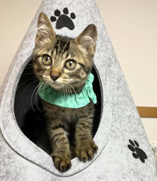 | 里親募集する理由 | 繁華街のラーメン屋の裏で三毛猫を見かけ、保護しようと準備していたらすでに生んでいました。 子猫たちを保護し、母猫は不妊手術をしました。 |
