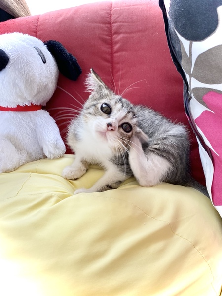 | 里親募集する理由 | 空き家のお庭で、兄弟と一緒に保護いたしました。 キジトラ君は、兄弟の中で1番小さい子ですが、1番食べます。 ちょっとビビりな面もありますが、なでてもらうのが大好きな子です。 キジ白君は、面倒見の良い優しい子です。 柔軟性のある賢い性質です。 仲良し兄弟ですから、一緒に家族に迎えていただけたら、ありがたいです。 もちろん、一匹でもかまいませんからね。 ノミダニ駆除済み 便検査済み 2匹とも、健康体です。 |