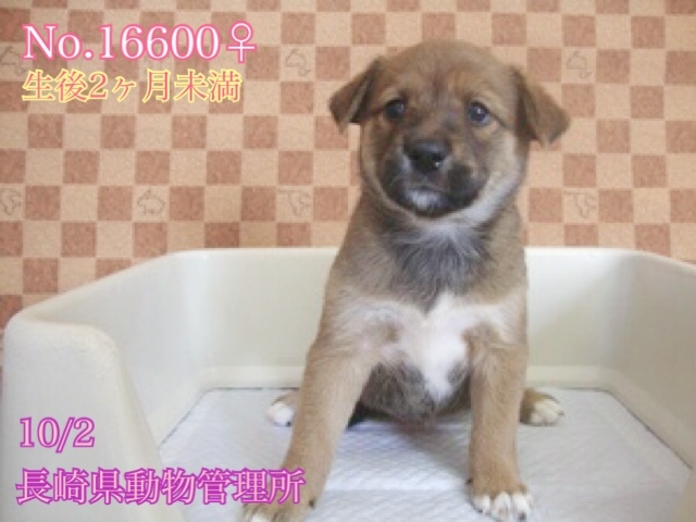 | 里親募集する理由 | ♡まだ生後2ヶ月にも満たないよちよち歩き。 野良ちゃん母犬から産まれたとっても可愛い雑種の子犬、そっくり兄妹2匹ですฅ•ﻌ•ฅ 一日も早く温かい家庭の中で過ごさせてあげたいです。 ⭐️県外、遠方の方でも譲渡の条件が合い、良縁に恵まれましたら里親になっていただけますのでどうぞ宜しくお願い致します! ※ ※ ※ 長くなりますがm(_ _)m 犬猫と里親様の幸せの為にも、募集内容を熟読し、必ずご家族とよく相談をされた上、ご家族全員の賛同を得られてからのお問い合わせ をお願い申し上げます※※※ ⭐️ 外飼いでは無く、室内飼育で家族の一員として迎えて下さる方、「引き渡し方法」のところにあります【①〜のアンケート】にご回答と、どちらの子をご希望か、と共に、お問い合わせを頂けますようお願い申し上げます♡ ★No.16597 男の子 ★No.16600 女の子 長崎県大村市にて保護され現在は長崎県動物管理所に収容されています。 優しい職員さん方が大丈夫だよ、幸せになれます様にと毎日触れ合い、声掛けしながら一生懸命にお世話してくださっています(^^) 尻尾フリフリでとても人懐こく喜んで寄って来て足元にじゃれついてきます。 ワチャワチャしていて仔犬らしさ全開(^^) 愛嬌たっぷりラブリーの甘えん坊さんワンコです♡ 栄養不良に不衛生な環境からの保護・収容で、ノミダニがついていました(><) 痩せていて毛並み毛艶も悪く栄養状態や健康状態がいいとは言い切れません。 体調も急変しやすいかと思われます(>_<) 何か病気や障害が有るのか、無いのかも分かりません。 今後、体調の急変などもあり得ることを念頭に置き、譲渡後は早急な病院受診が可能なご家庭を希望しておりますm(_ _)m 現在は1日に3回、ご寄付で送って頂いた栄養価の高い良質な仔犬用のドライフード(ネイティブドッグフードパピー)をミルクでふやかしたものと、デビフの離乳食缶詰を食べています。 まだまだ幼い為、長時間のお留守番は出来ません。特に子犬は寂しくて夜鳴きする子も多いです。 ※今後の健康な成長の為に、引き続き良質なフードを与える事が可能な方。 ※大事な社会化期で、これから甘噛み期やトイレの躾など、何かと手がかかりますが育てる自信と覚悟のある方。 ※子犬は思っていた以上にお世話が大変だと言われる方が多く、排泄も頻回で甘噛み期もあります。カミカミされると痛いです! ご苦労もかなり多いと思います( ; ; ) 日に日に大きくなっていきますし換毛期は抜け毛もわんさか、日々のブラッシングやら爪切りも必要です。 本当に大変ですが!m(_ _)m どんとこい!と充分にご理解頂ける方m(_ _)m まだお散歩デビューは出来ませんが今後成長していく中で、急な物音や知らない場所にビックリして怖がって、咄嗟に逃げよう、逃げようとする可能性も大いにあり得る事です。 その時の力、引きの強さも想定し、急な走り出しや高い塀や壁・柵の飛び越え・急な方向転換や首を振って後退りからの首輪抜け、胴輪抜けにはご用心です! 呼び戻しも教えなければなりませんし、パニックになったワンちゃんには呼び戻しもききません、もし逃がしてしまったらピューっと走って逃げて行ってしまう可能性大です!(>_<) もし逃がしたらもう捕まえられない!というようにお考えくださいm(_ _)m ※繰り返しになりますがどんな子であっても、慣れてきても常に、脱走・逃走には充分な注意と最大限の配慮(W首輪、胴輪にWリード)迷子札の装着をお願いしております m(_ _)m 適切に制御し、躾や毎日朝晩のお散歩、運動の時間をしっかり取ることの出来る、沢山優しく触れ合って頂ける方、先ずはじっくりと時間を費やし触れ合い、信頼関係を作っていく事の出来るご家庭を希望しております。 ♡人間が焦らずにゆっくり見守りながら、愛情を持って接ししっかりとお散歩にも連れ出して行けば、幼いこの子達はきっと新しい家庭に馴染んでいける、優しい家族に囲まれて思い切り甘えて遊んでほしいのだと思います(^^) 当分の間はかなり手がかかり大変かと思いますがまだ子犬ですし、広い心で迎えて頂ける方、愛くるしいこの子達をこの先も尻尾フリフリ♫ニコニコの笑顔にしてくださる方、いらっしゃいませんか? どうぞ宜しくお願い申し上げますm(_ _)m https://er-animal.jp/pepy/69259 ⭐️必ず室内飼育で、譲渡後速やかに病院受診、健康診断、2回目3回目の混合ワクチン、生後4〜6ヶ月頃を目処に去勢、避妊手術をする事が可能なご家庭。 ⭐️まだまだ幼い為長時間のお留守番は出来ません。 なるべくお留守番の少ない(4時間以内)沢山優しくスキンシップやコミュニケーションで触れ合っていただけるご家庭。 ストレスが溜まらぬよう、成長後の運動量もしっかり確保出来るご家庭m(_ _)m ⭐️トイレの躾は1からとなります。 まだ子犬なので躾は入りやすいと思われます。現在ペットシートでトイレの練習中(^^) 最初は何かと手がかかり大変ですが(広めのトイレスペースや、ペットシート、マナーベル